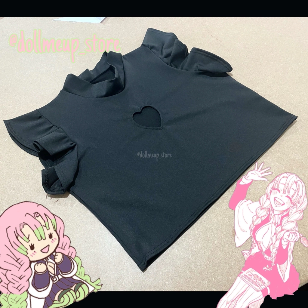 Inspirado em uma delicada fanart da personagem Mitsuri Kanroji de Kimetsu no Yaiba, este cropped traz toda a leveza e feminilidade que amamos na Hashira do Amor. Destaque para as cavas com babadinhos, que adicionam um toque extra de fofura à peça.