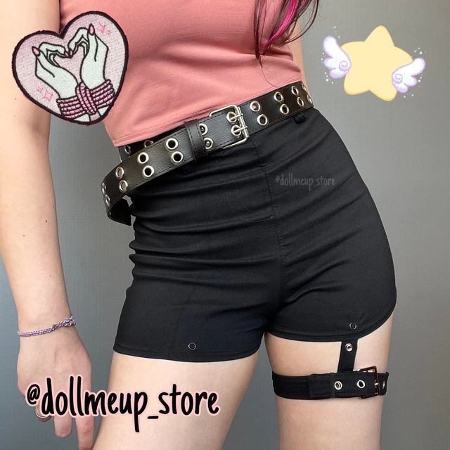 O shorts cintura alta kpop possui 2 unidades de botão preto na barra do shorts para ser possível remoção do garter.