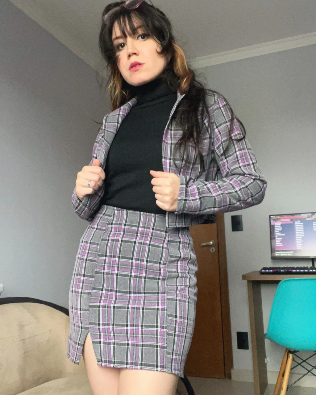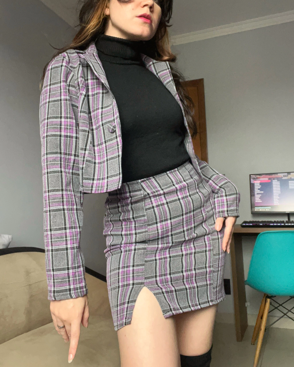 A saia justa doll me up com fenda chegou para te aquecer com estilo neste inverno! Feita em lãzinha xadrez de alta qualidade e gramatura média, essa peça é elegante e ideal para looks de frio. Possui zíper invisível na parte traseira para um acabamento sofisticado.