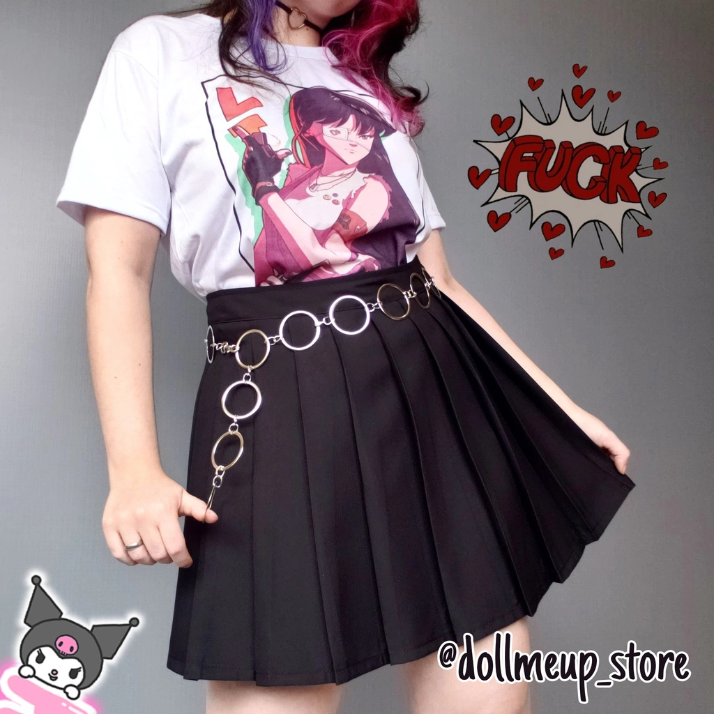 Saia de Pregas Colegial Preta (Sem Corrente)