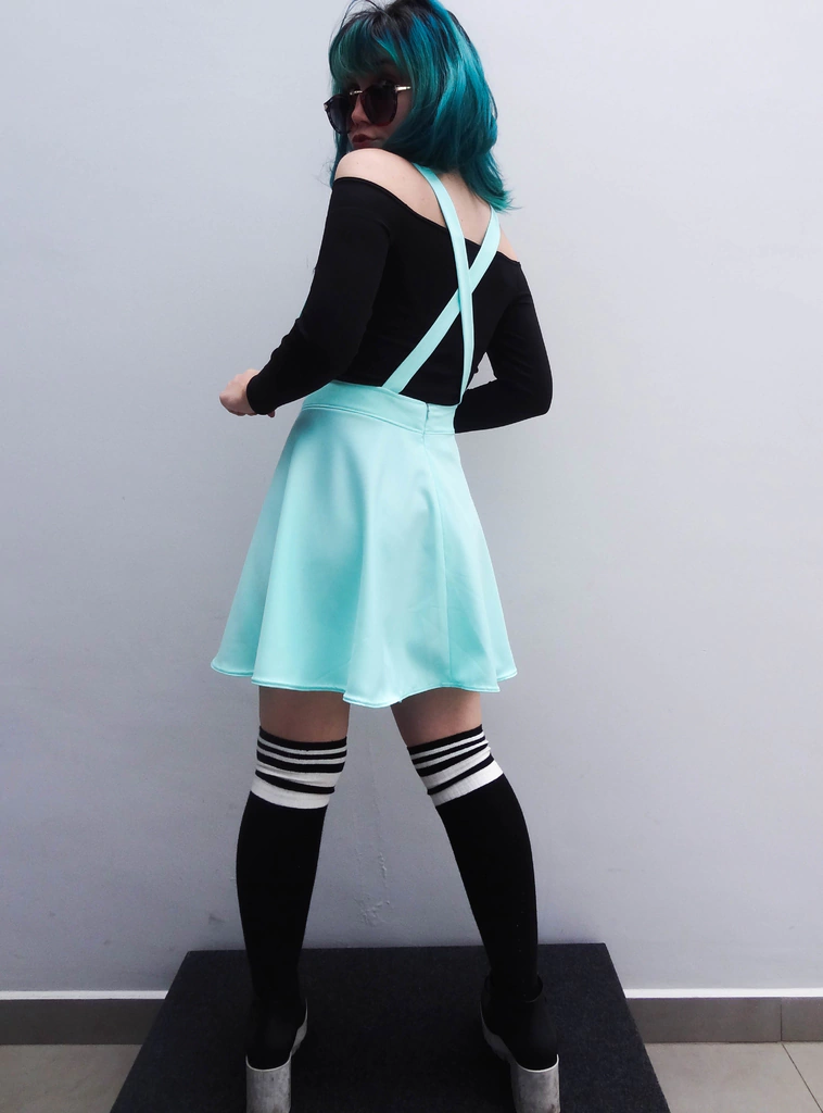 Traga um ar delicado e encantador ao seu guarda-roupa com a Saia Rodada Verde Pastel com Suspensórios Fixos. Ideal para criar looks fofos e elegantes com um toque retrô. 🌿✨